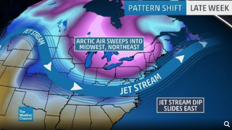 El viernes, el aire frío atravesará los Grandes Lagos y llegará al noreste, donde las temperaturas máximas podrían mantenerse en el rango de los 20 a los 40 grados Fahrenheit (-6,6 y 4,4 grados Celsius).